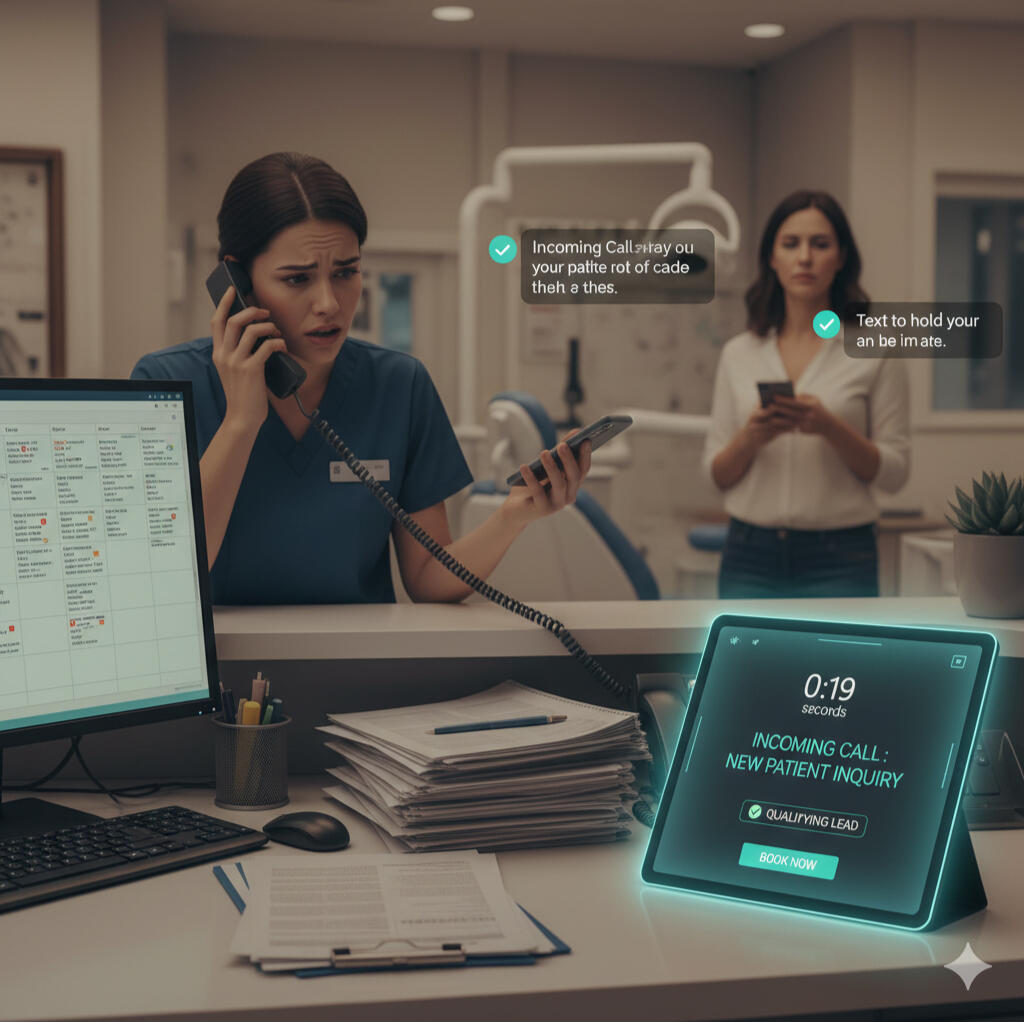 Your front desk is the heartbeat of your practice, but they can't be everywhere. If a new patient calls at 6 PM or while the phones are busy, they hit voicemail—and they never call back. Our 'Intake Guard' answers in 20 seconds, qualifies their needs, and books the consultation directly into your calendar. You win the patient while your staff stays focused on the patients in the office.