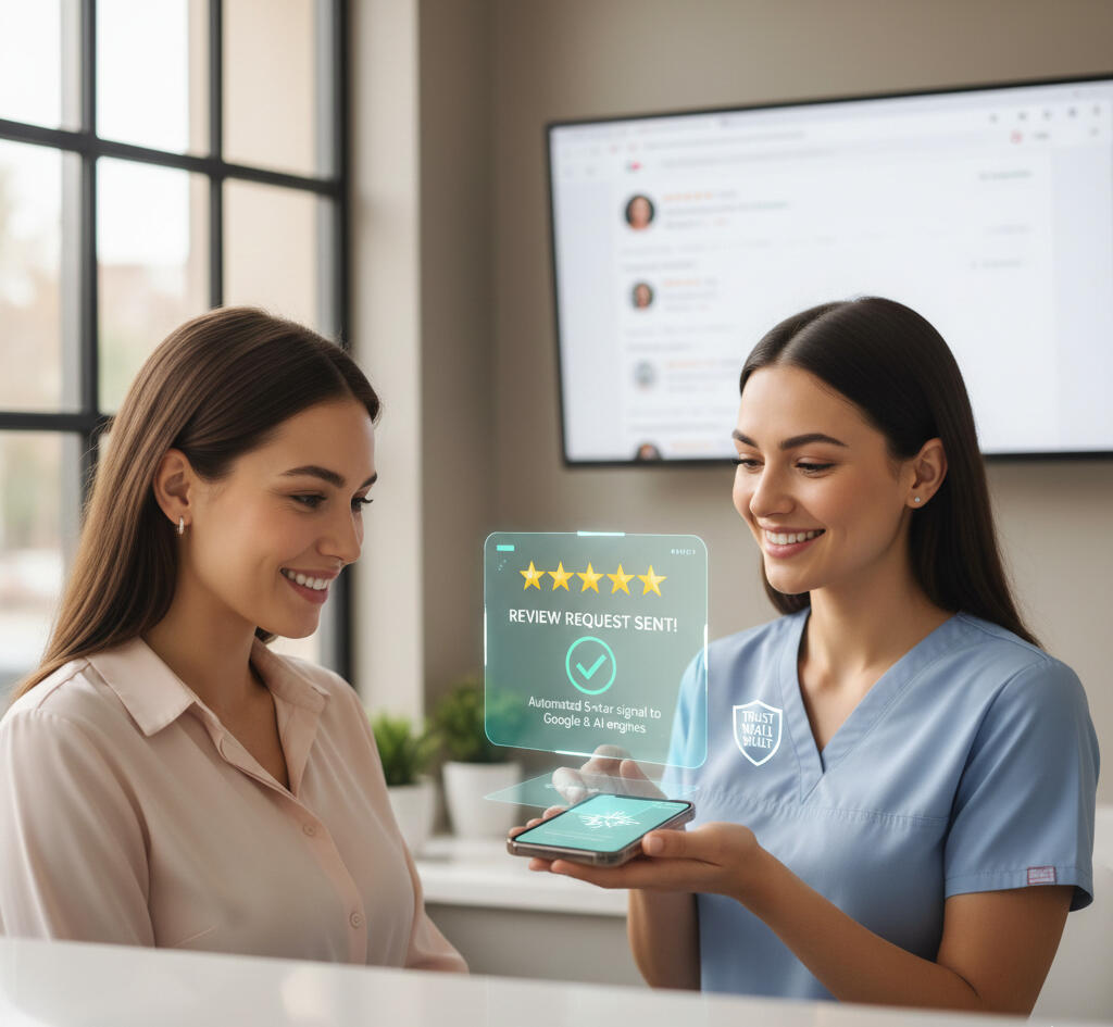 Google and AI engines only recommend the doctors they trust. If you haven't had a fresh patient review in weeks, you're a 'high-risk' choice. Our system automatically texts your patient a review link the moment they check out. We build a wall of social proof that forces the search engines to keep you at the top.
